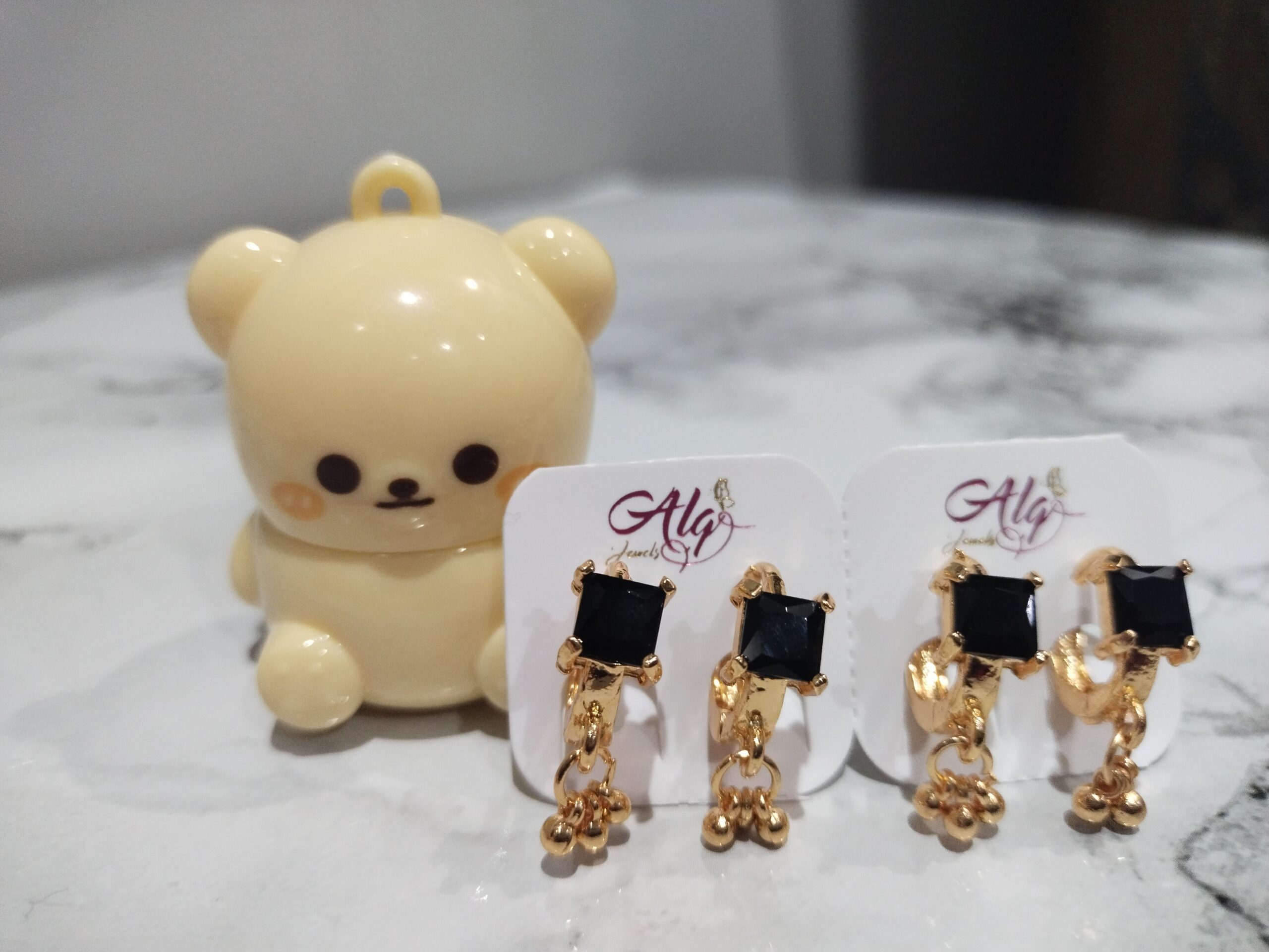 You don’t have to pick just one! These studs are available in three stunning gemstone colors (Ruby Red, Jet Black Onyx, and soft Peach Amber). The bright, square gem sits perfectly on your earlobe, while the three tiny golden drops hang below, adding delightful movement and sparkle. Even a child can see the beautiful sparkle these stones give off!