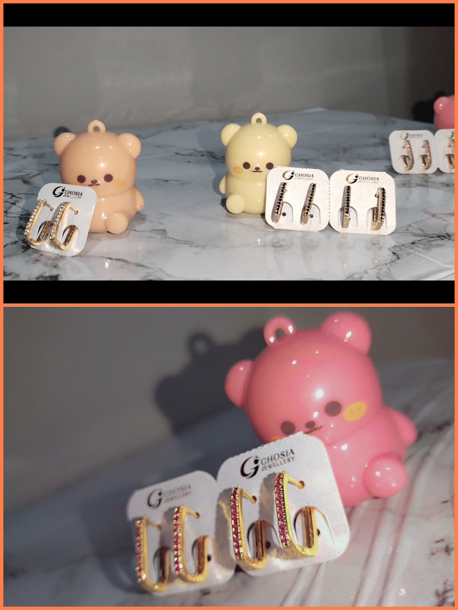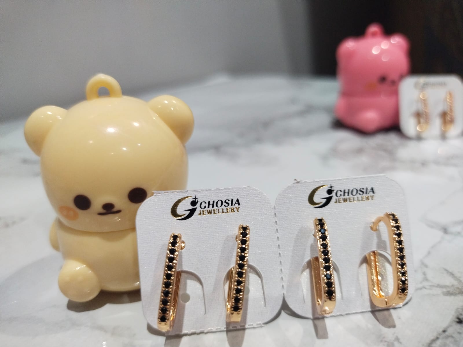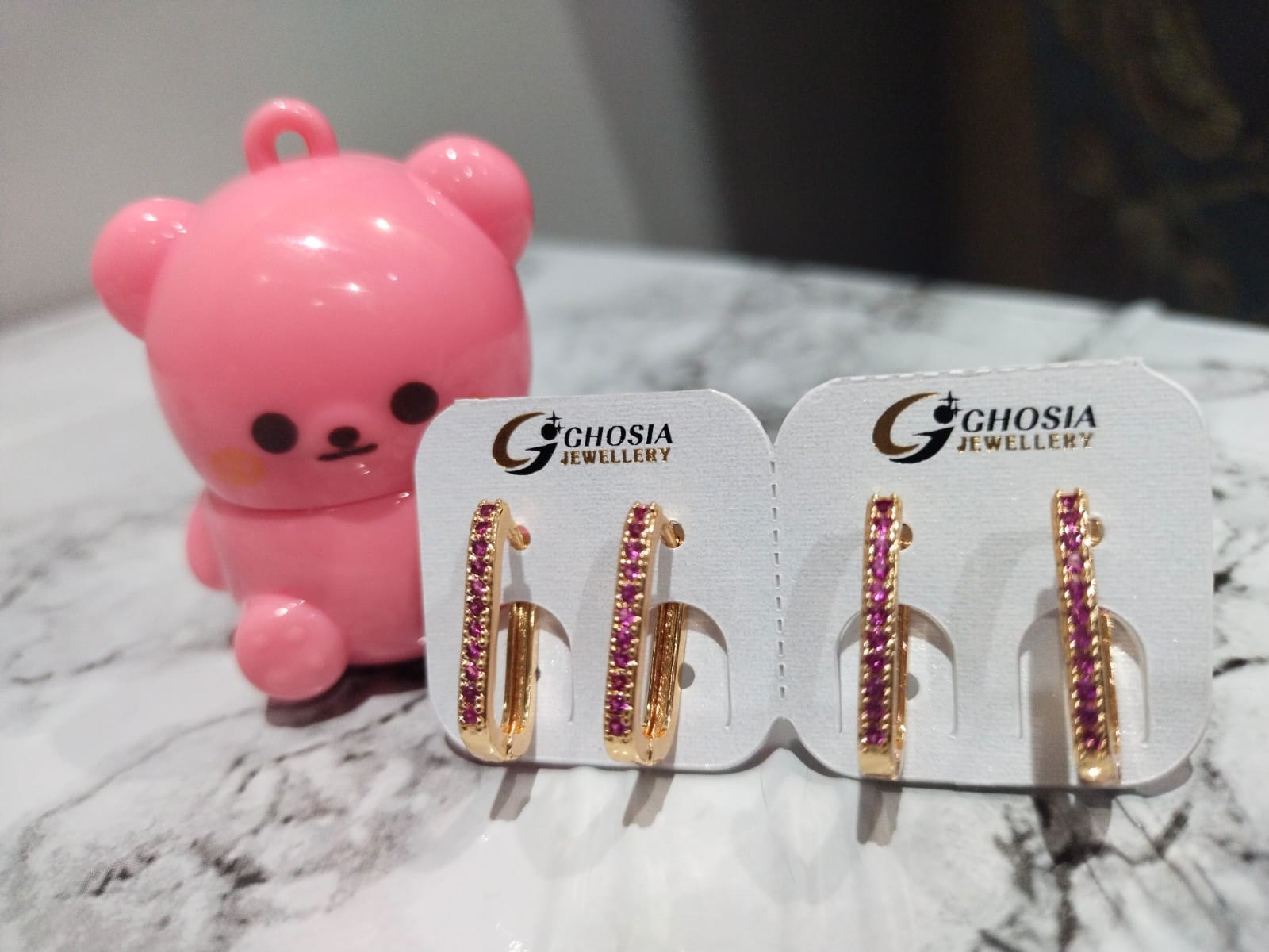 These beautiful huggie hoops feature a contemporary ‘U’ shaped design that gracefully embraces your earlobe. Each earring is lined with a row of sparkling gemstones, available in three captivating colors: soft Rose Pink, vibrant Black , and serene White. Choose your favorite to add a pop of subtle color that enhances any outfit, from casual to formal. Even a child can see how shiny and pretty these colors are!